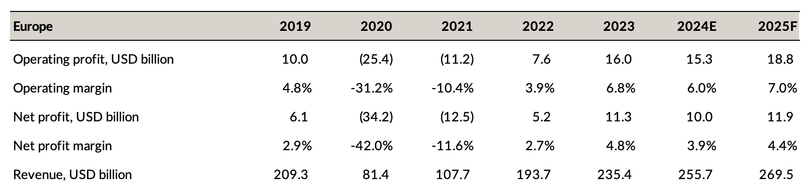 As far as 2025 is concerned, IATA think that profits will improve a bit, presumably driven by lower fuel costs. We’ll cover that issue in the next section, but I think I would probably agree with that sentiment. I haven’t included my own forecast for next year. Quite frankly, now I’ve seen how dependent the numbers are on the performance of airlines in Eastern Europe which I don’t follow as closely as I do the Western European ones, I’m not sure I’m qualified to comment.