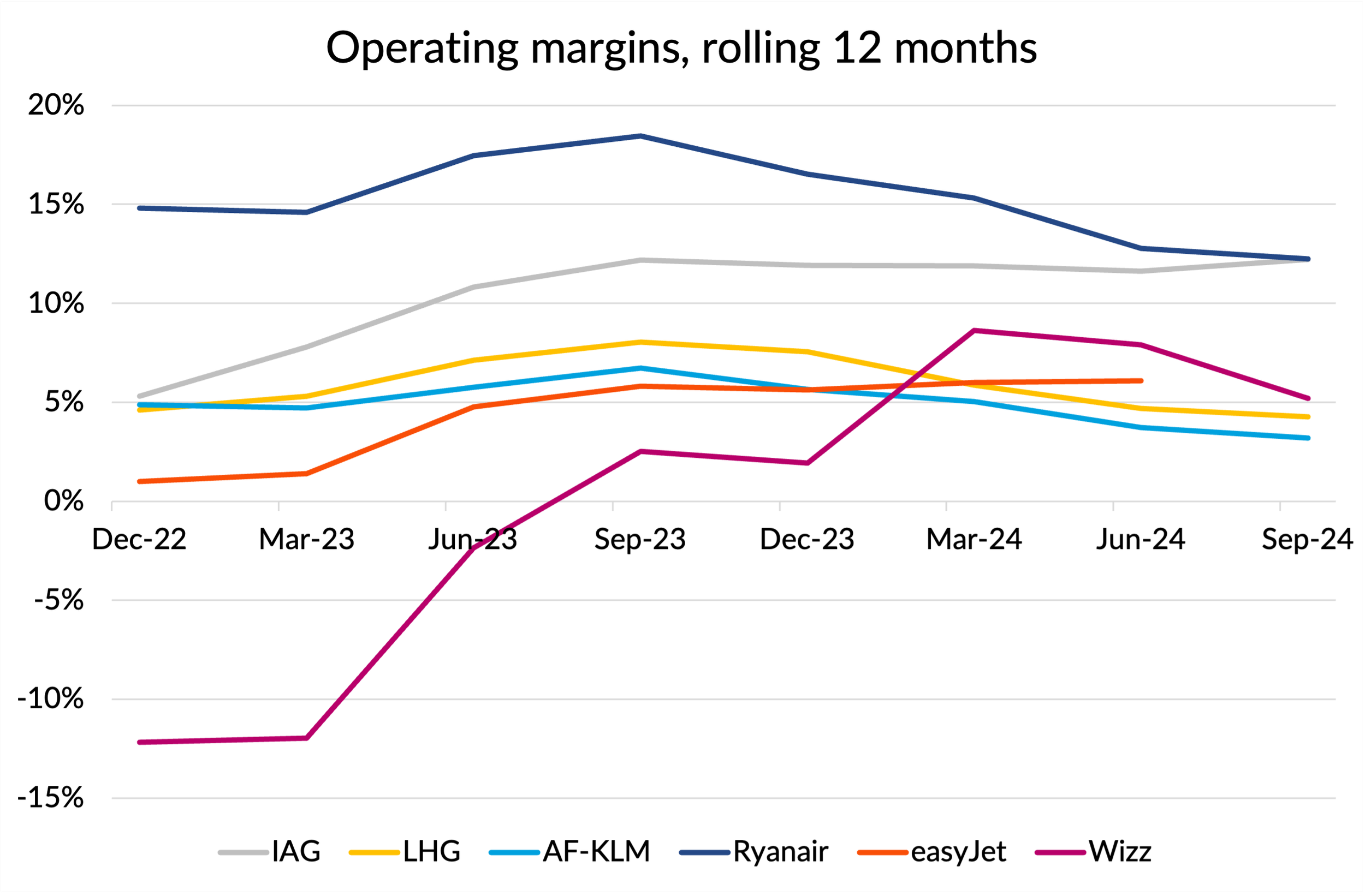 Note: 12 months to September 2024, except easyJet which is 12 months to June.